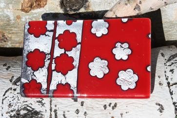 3 1/2" x 2 1/4" Silver on Red Flowers
