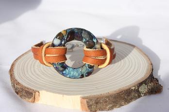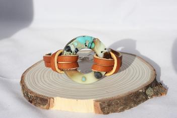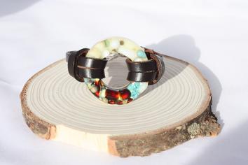 Tack Fused Turquoise & Browns Ring Bracelet w/ Tan Leather Strap - $38.00