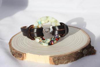 Tack Fused Cranberry & Cream Ring Bracelet w/ Espresso Leather Strap - $48.00