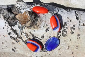 Orange, Blue & White Full Fused Ring Bracelet w/ Toggle Clasp - $38.00