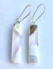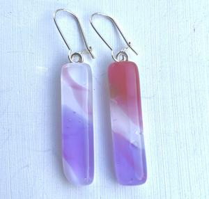1 1/4” x 3/8 Full Fused Purple, Pink and white Swirl Earrings w/Silver Plated, Nickel Free Findings - $22.00