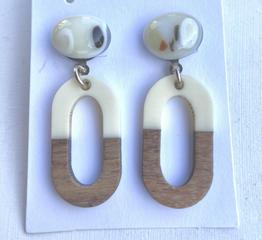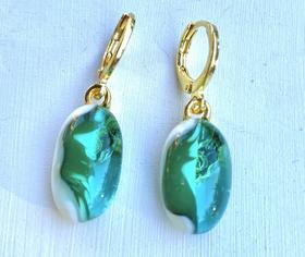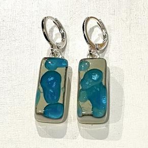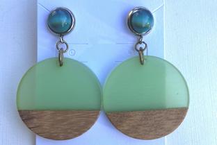 1 3/4” X 1 ” Full Fused Blue and Green Earrings w/Resin and Wood. Silver Plated, Nickel Free Findings - $25.00