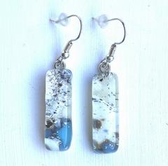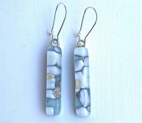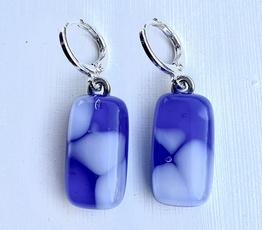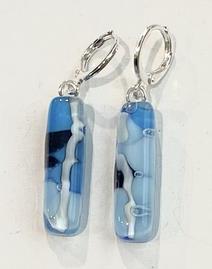 1/4" x 1" Full Fused Blue and White Earrings w/ Silver Plated, Nickel Free Findings - $22