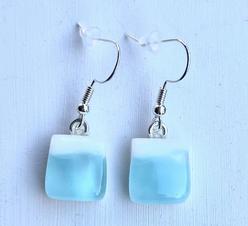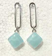 1/2" Full fused Diamond Shaped Earrings - Ice Blue w/1" Long Drop Silver Plated, Nickel Free Findings - $25.00