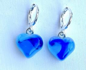 ½” Full fused Hand Cut Heart Earrings. Blue Swirl w/ Silver Plated, Nickel Free Findings - $38.00