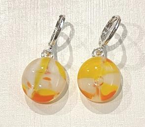 1/2" Full Fused Round Orange, Yellow & White Earrings w/Silver Plated, Nickel Free Findings - $22