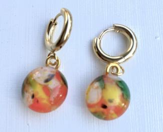 ½” Orange, Yellow, Green and White Full Fused Earrings w/Gold Plated, Nickel Free Findings - $25.00