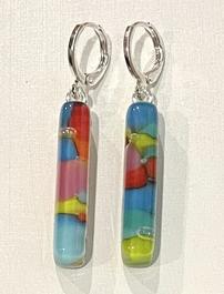 1/4" x 1” Full Fused Fiesta Confetti Earrings w/Silver Plated, Nickel Free Findings - $22.00