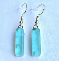 3/4 x 1/4" Aquamarine Full Fused Earrings w/Silver Plated, Nickel Free Findings - $22.00