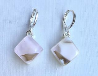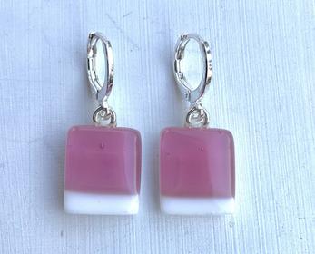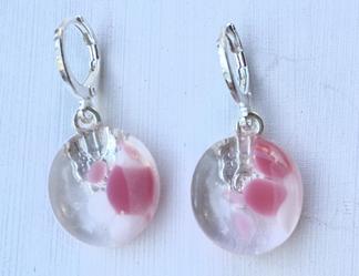 3/4” X 1/2” Full Fused Pink, White and Clear Earrings w/Silver Plated, Nickel Free Findings - $22.00