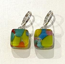 1/2" Full Fused Square Fiesta Confetti Earrings w/Silver Plated, Nickel Free Findings - $22