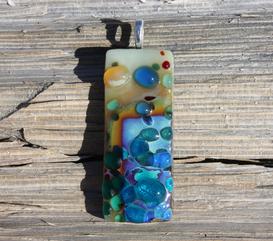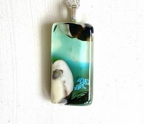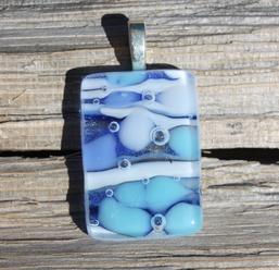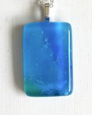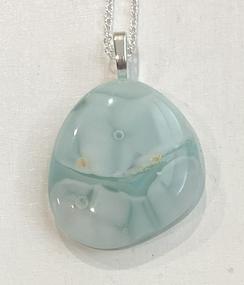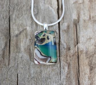 1 ½” x 3/4" Full Fused Blue, Green & Cream Pendant w/18” Silver Plated Chain - $28.00