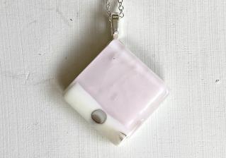 1” Full Fused Pink and Cream Diamond Shaped Pendant w/ 18” Silver Plated Chain - $28.00