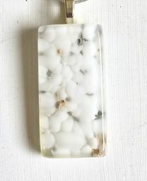 1 3/4"" x 1" Full Fused White w/Gold Flecks Pendant with Silver Plated Chain - $28.00