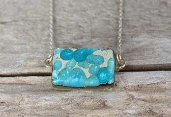 1"x 3/4" Full Fused Aquamarine Pendant with 18" Silver Plated Chain - $28.00