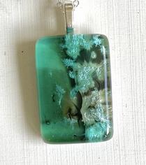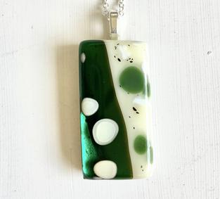 1 1/2"x 3/4" Full Fused Green and Cream Pendant w/Silver Plated Chain - $28.00
