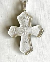 1 1/2"x 1" Hand Cut, Full Fused Silver Colored Cross Pendant w/ 18" Silver Plated Chain $32.00