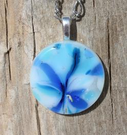 1 ¼” Full Fused Blues and White Circle Pendant w/ 18” Figure Eight Chain - $34.00